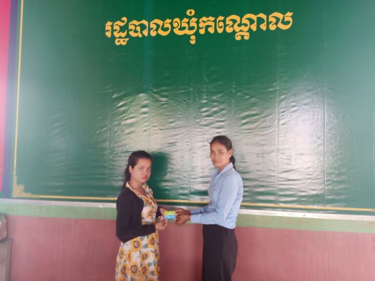 លោកស្រី ធូ សារឹម ជំទប់ទី២ នៃឃុំកណ្ដោល និងជាអ្នកទទួលបន្ទុកស្ត្រី និងកុមារឃុំ បានផ្តល់កាតវិងជូនស្រ្តីមានផ្ទៃពោះ