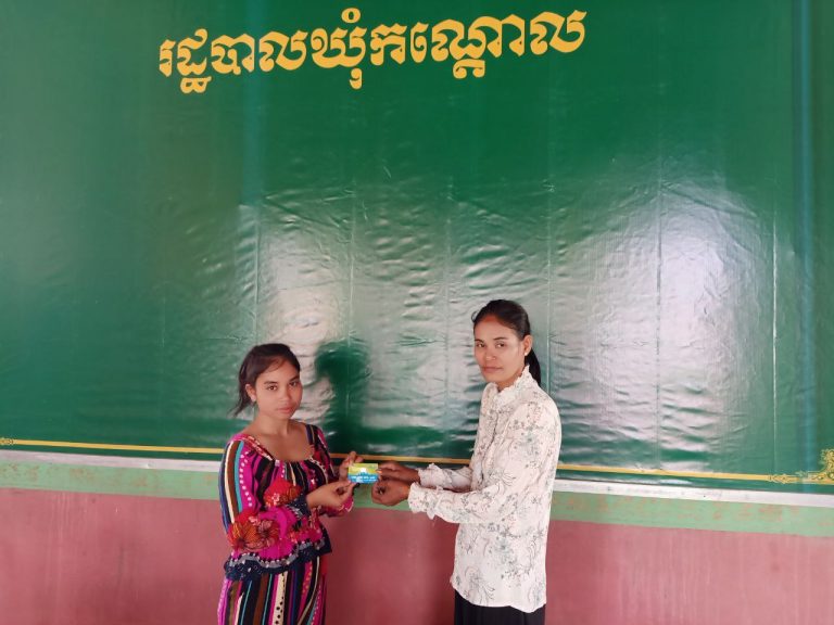 លោកស្រី ធូ សារឹម ជំទប់ទី២ឃុំកណ្ដោល និងជាអ្នកទទួលបន្ទុកស្ត្រី និងកុមារឃុំ បានផ្តល់កាតវិងជូនស្រ្តីមានផ្ទៃពោះ ចំនួន ២នាក់