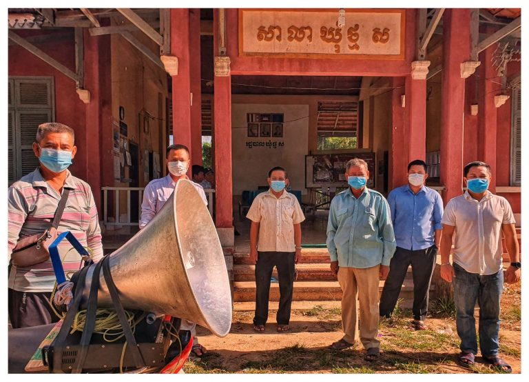 លោក អិក កួន មេឃុំថ្មស បានដឹកនាំក្រុមការងារឃុំ ភូមិ រួមនិងមានការសហការជាមួយមណ្ឌលសុខភាពថ្មស ចាក់មេក្រូផ្សព្វផ្សាយពីវិធានការ ទប់ស្កាត់ បង្ការពីជំងឺ កូវិដ-១៩