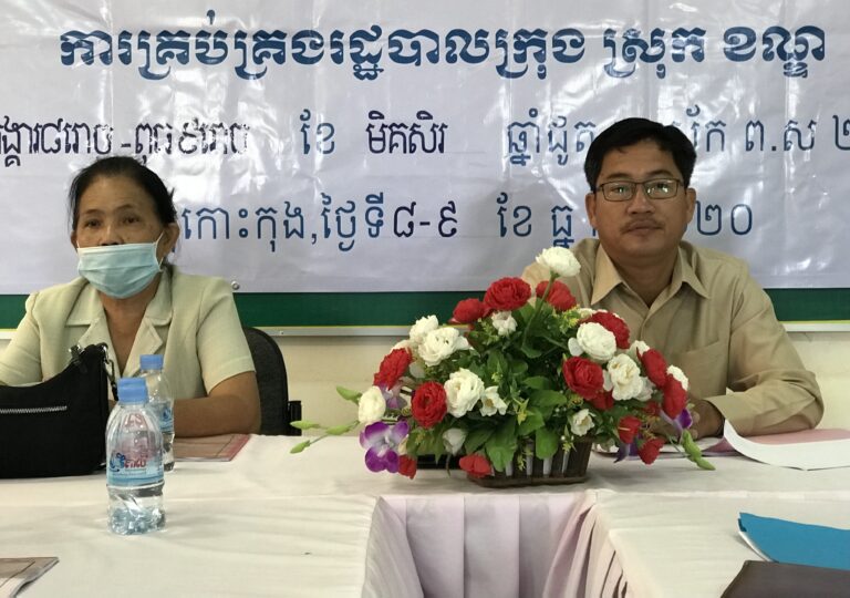 លោកស្រី គ្រី សោភ័ណ ប្រធានក្រុមប្រឹក្សាស្រុក លោក ហាក់ ឡេង អភិបាល នៃគណ:អភិបាលស្រុក បានអញ្ជើញជាគណ:អធិបតីក្នុងពិធីបើកវគ្គបណ្តុះបណ្តាល ស្តីពីការគ្រប់គ្រងរដ្ឋបាលក្រុង ស្រុក