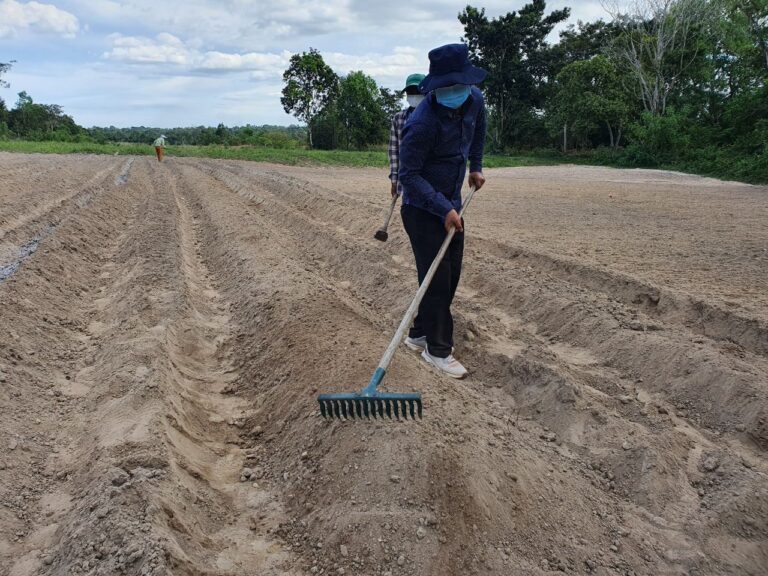 លោក ឈុន ចាន់ណា ប្រធានស្តីទី ការិយាល័យកសិកម្ម ធនធានធម្មជាតិ និងបរិស្ថាន ដឹកនាំក្រុមការងារ ចូលរួមសហការណ៍ជាមួយគម្រោង ស្ទៀរបស់អង្គការសង្គ្រោះកុមារ និងអង្គការ IDE ចុះតាមដានត្រួតពិនិត្យកសិករគម្រោង និងជួយតម្លើងចម្ការបង្ហាញដាំដំណាំត្រសក់ទ្រើង នៅភូមិសុវណ្ណាបៃតង