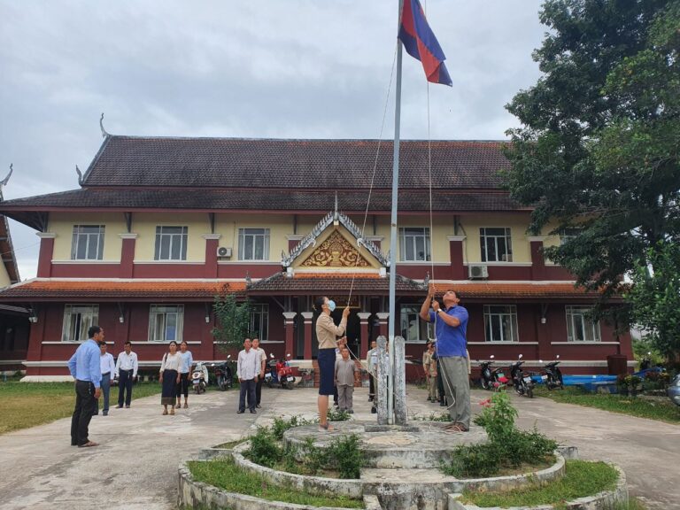 ក្រុមប្រឹក្សាស្រុក គណៈអភិបាលស្រុក និងការិយាល័យចំណុះទាំង១៣របស់រដ្ឋបាលស្រុក កងកម្លាំងប្រដាប់អាវុធ និងប្រជាការពារភូមិបានចូលរួមពិធីគោរពទង់ជាតិ