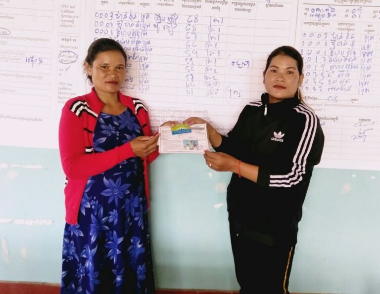 លោកស្រី ឃុន ស្រីម៉ៅ ជំទប់ទី២ឃំុអណ្តូងទឹក តំណាងឲ្យលោក ឃៀង យិង មេឃុំអណ្តូងទឹកបានផ្តល់កាត់វិងជូនស្រ្តីសំរាលកូនឈ្មោះ សាន់ ដាវ អាយុ៣៧ឆ្នាំ អាស័យដ្ឋានបច្ចុប្បន្ន ភូមិជីមាល ឃុំអណ្តូងទឹក