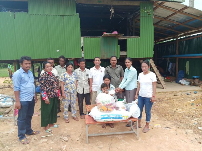 លោក ឆឹង ង៉ែ មេឃុំកណ្តោល និងជាប្រធាន គ.ក.ន.កឃុំ បានចុះសួរសុខទុក្ខប្រជាពលរដ្ឋឈ្មោះស្រី ជួន ជីន ដែលរងគ្រោះដោយសារអគ្គីភ័យភូមិប្រលាន