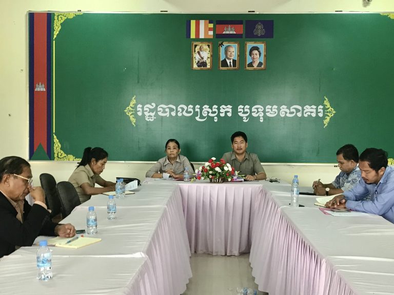 លោកស្រី គ្រី សោភ័ណ ប្រធានក្រុមប្រឹក្សាស្រុក និងលោក ហាក់ ឡេង អភិបាល នៃគណៈអភិបាលស្រុកបូទុមសាគរ អញ្ជើញដឹកនាំកិច្ចប្រជុំត្រួតពិនិត្យការអនុវត្តកម្មវិធីឧបត្ថម្ភសាច់ប្រាក់ជូនគ្រួសារក្រីក្រ និងងាយរងគ្រោះក្នុងអំឡុងពេលរដូវកូវីដ១៩
