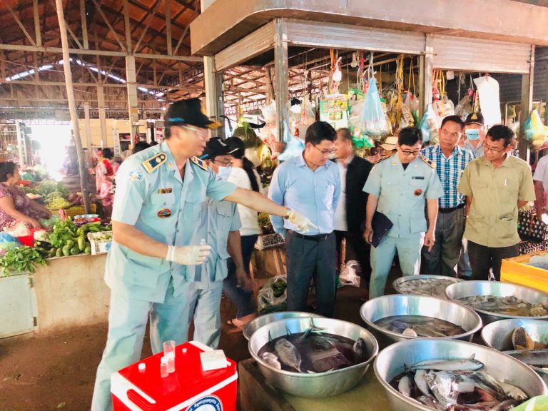 សាខាកាំកុងត្រូលខេត្តកោះកុង សហការជាមួយរដ្ឋបាលស្រុក ចុះពិនិត្យសុវត្ថិភាពចំណីអាហារនៅក្នុងផ្សារអណ្តូងទឹក ស្ថិតនៅក្នុងភូមិអណ្តូងទឹក