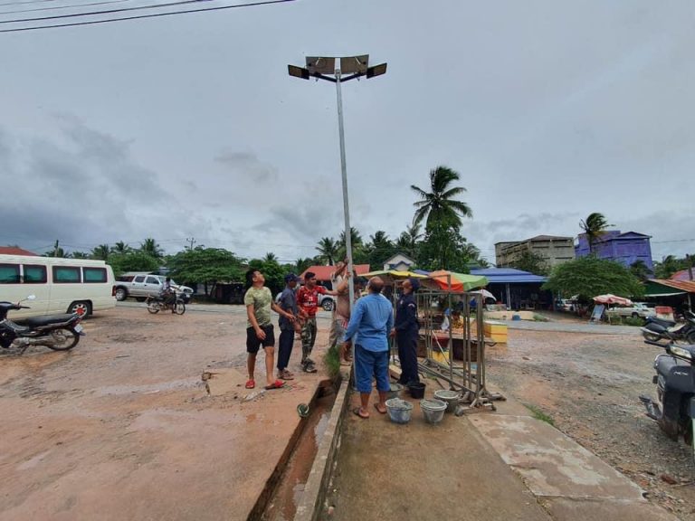 លោក ហាក់ ឡេង អភិបាលស្រុក ដឹកនាំក្រុមការងារ ចុះដាក់អំពូលសូឡា ចំនួន ១១អំពូល ដែលឧបត្ថម្ភដោយ លោក ង៉ូវ ចាន់ណា ដើម្បីបំភ្លឺតាមដងផ្លូវសាធារណះ ជូនបងប្អូនប្រជាពលរដ្ឋធ្វើដំណើរទៅមក ចំណុចផ្លូវបំបែកចូលវិទ្យាល័យចំការលើ ស្ថិតនៅភូមិចំការលើ ឃុំថ្មស