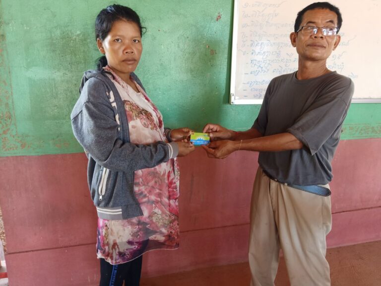 លោក ឃៀង យិង មេឃុំអណ្តូងទឹក បានចាត់ឲ្យ លោក ឈេង ហៃ ក្រុមប្រឹក្សាឃុំ បានផ្តល់កាតវីងជូនស្ត្រីមានផ្ទៃពោះ ឈ្មោះ សឹម ស្រី