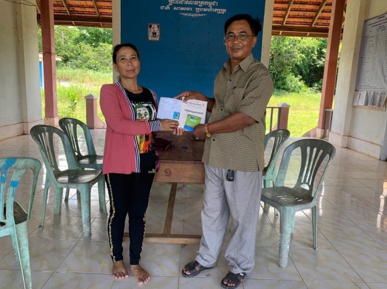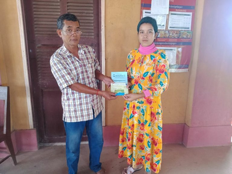 លោក អិក កួន មេឃុំ ព្រមទាំងលោកស្រី ស្រី សូរិយា សមាជិកក្រុមប្រឹក្សាឃុំទទួលបន្ទុកគ.ក.ន.ក ឃុំ បានផ្ដល់សំបុត្រកំណើត និងបើកកាតវីងជូនគ្រួសារក្រីក្រឈ្មោះ គៀត សុឃឿន