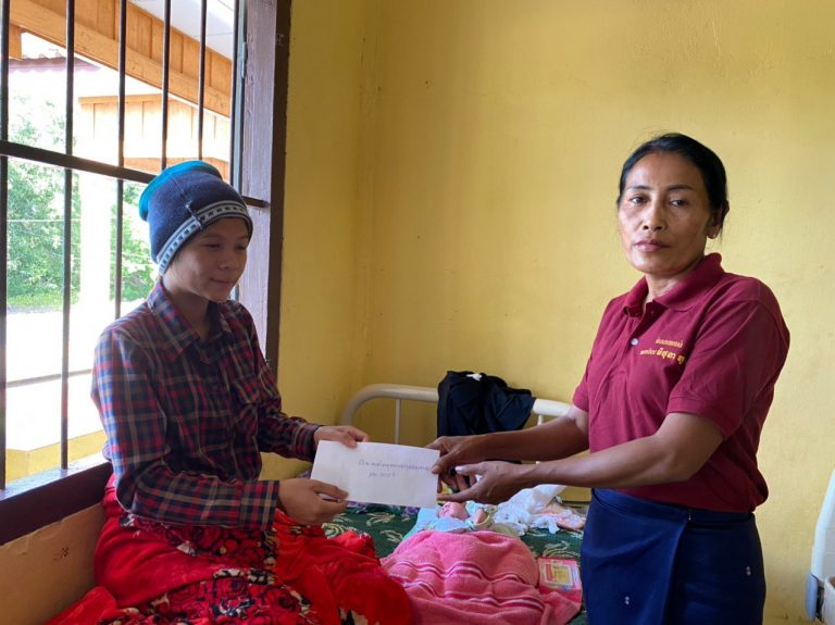 លោក វាំង វីរះ មេឃុំតានូន បានផ្ដល់កាតវីង ជូនស្រ្ដីក្រីក្រមានផ្ទៃពោះ ឈ្មោះ ម៉េត ស៊ី មានទីលំនៅភូមិទួលពោធិ៍