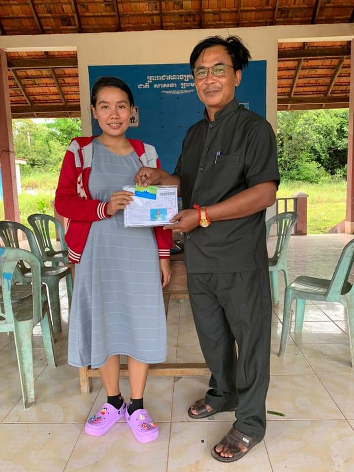 លោក វាំង វីរះ មេឃុំតានូន បានផ្ដល់កាតវីង ជូនស្រ្ដីក្រីក្រមានផ្ទៃពោះ ឈ្មោះ ឈូង ស៊ិត មានទីលំនៅភូមិព្រែកខ្យង