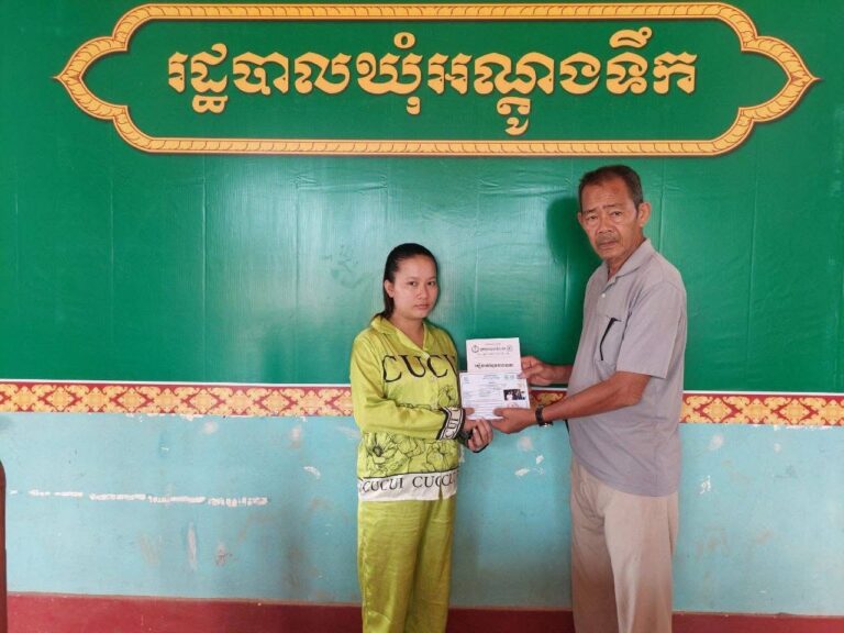 លោក ឃៀង យិង មេឃុំអណ្តូងទឹក បានអនុម័តចុះឈ្មោះជូនស្រ្តីមានផ្ទៃពោះចូលទៅក្នុងកម្មវិធីជាតិជំនួយសង្គមក្នុងកញ្ចប់គ្រួសារដែលមានប័ណ្ណសមធម៌ ចំនួន២រូប
