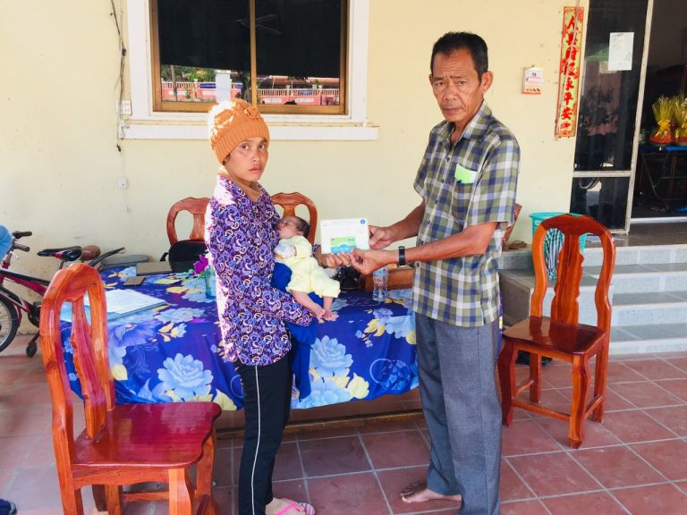លោក ឃៀង យិង មេឃុំអណ្តូងទឹក ទទួលចុះបញ្ជីឈ្មោះប័ណ្ណក្រីក្រ និងផ្តល់កាតវិញជូនស្ត្រីទើបសម្រាលរួច