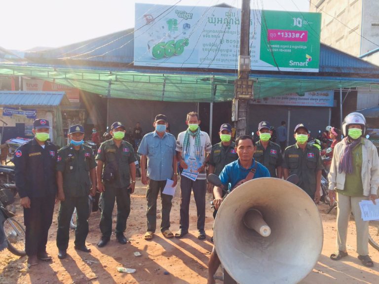 លោក ឃៀង យិង មេឃុំអណ្តូងទឹក បានដឹកនាំក្រុមការងារចុះបំពងមេក្រូផ្សព្វផ្សាយស្ដីពីសង្រ្គាមវីរុសផ្លូវដង្ហើមថ្មីព្រមទាំងណែនាំពីវិធានការបង្ការជម្ងឺកូរ៉ូណា ក្នុងមូលដ្ឋានឃុំអណ្តូងទឹក