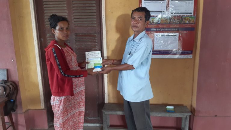 លោក ឃៀង យិង មេឃុំអណ្ដូងទឹក បានទទួលចុៈឈ្មោះប័ណ្ណក្រីក្រ នឹងប្រគល់កាតវីង ជូនសម្រាប់ពិនិត្យផ្ទៃពោៈតាមការកំណត់របស់មណ្ឌល់សុខភាព