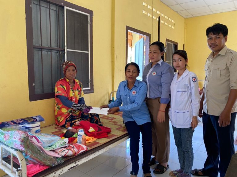 លោកស្រី អ៉ិន សោភ័ណ្ឌ អនុប្រធានអនុសាខាកាកបាទក្រហមកម្ពុជាស្រុក ចុះសួរសុខទុក្ខ និងនាំយកអំណោយ មនុស្សធម៌ផ្តល់ជូនស្ត្រីក្រីក្រទើប នឹងសម្រាល