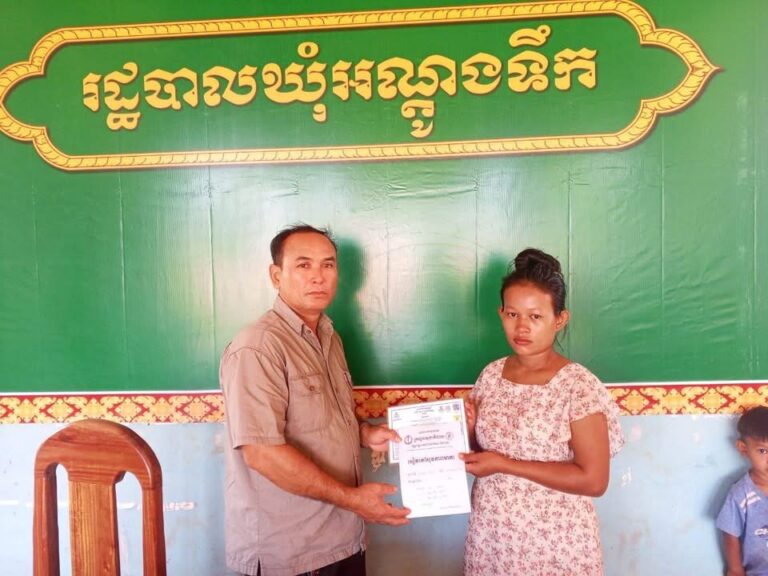 លោក យិន យួត ជំទប់ទី១ បានអនុម័តចុះឈ្មោះជូនស្រ្តីមានផ្ទៃពោះចូលទៅក្នុងកម្មវិធីជាតិជំនួយសង្គមក្នុងកញ្ចប់គ្រួសារដែលមានប័ណ្ណសមធម៌ ឈ្មោះ យួន ថង អាយុ២៣ឆ្នាំ មានទីលំនៅបច្ចុប្បុន្នភូមិជីមាល ឃុំអណ្តូងទឹក ស្រុកបូទុមសាគរ ខេត្តកោះកុង