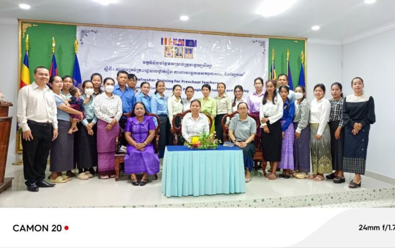 លោកស្រី សេង ស្រីនាង មន្ត្រីការិយាល័យអប់រំ យុវជន និងកីឡា គ្រូមត្តេយ្យសិក្សារដ្ឋ ចំនួន៣នាក់ លោកគ្រូ អ្នកគ្រូ មត្តេយ្យសិក្សាសហគមន៍ចំនួន០៤នាក់ ដែលជាសាលាគោលដៅរបស់អង្គការដៃគូ សមាគមបណ្តុះកុមារ ហៅកាត់ថា(BSDA)បានចូលរួមវគ្គបំប៉នបន្ថែមគ្រូមត្តេយ្យសិក្សាស្តីពី ការងារគ្រប់គ្រងរដ្ឋបាលថ្នាក់ ការងារបច្ចេកទេស និងល្បែងសេរី