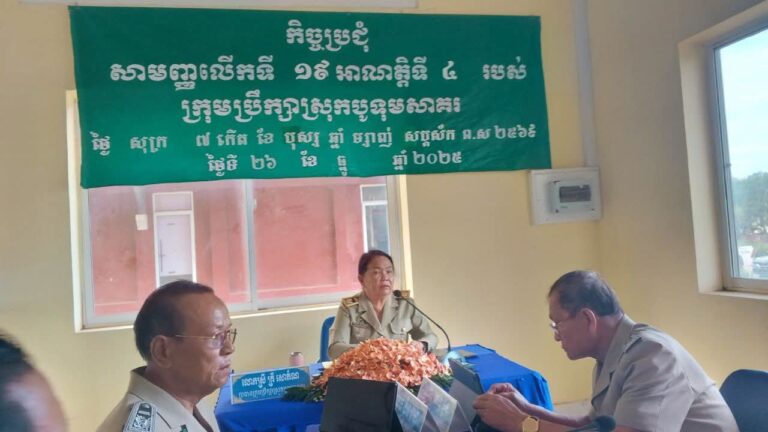 លោកស្រី គ្រី សោភ័ណ ប្រធានក្រុមប្រឹក្សាស្រុកនិងជាប្រធានអង្គប្រជុំ បានដឹកនាំកិច្ចប្រជុំសាមញ្ញលើកទី១៩ អាណត្តិទី៤ របស់ក្រុមប្រឹក្សាស្រុក