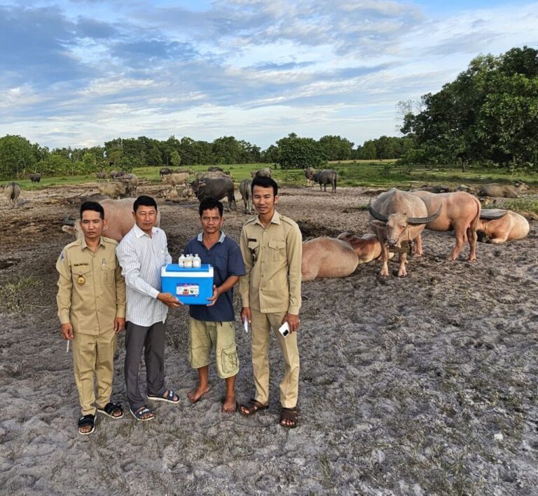 មន្ទីរកសិកម្ម រុក្ខាប្រមាញ់ និងនេសាទខេត្តកោះកុង ៖ ចុះចាក់វ៉ាក់សាំងការពារជំងឺសារទឹកក្របី ចំនួន ២៤៤ ក្បាល ជូនបងប្អូនប្រជាពលរដ្ឋ នៅភូមិស្ទឹងវែង សង្កាត់ស្ទឹងវែង ក្រុងខេមរភូមិន្ទ ខេត្តកោះកុង