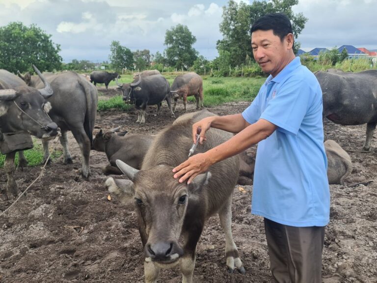 មន្ទីរកសិកម្ម រុក្ខាប្រមាញ់ និងនេសាទខេត្តកោះកុង ៖ សហការជាមួយភ្នាក់ងារសុខភាពសត្វភូមិស្ទឹងវែង ចុះចាក់វ៉ាក់សាំងការពារជំងឺសារទឹក សត្វក្របី