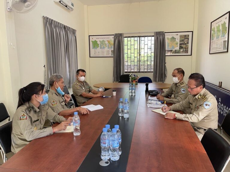 មន្ទីរកសិកម្ម រុក្ខាប្រមាញ់ និងនេសាទខេត្តកោះកុង៖ ប្រជុំជាមួយក្រុមការងាររដ្ឋបាលព្រៃឈើថ្នាក់កណ្ដាល ស្ដីពីគម្រោងចុះសិក្សាប្រមូលព័ត៌មានជីវចម្រុះដើមចន្ទ៍ក្រស្នា នៅតំបន់ជួរភ្នំក្រវាញ ខេត្តកោះកុង