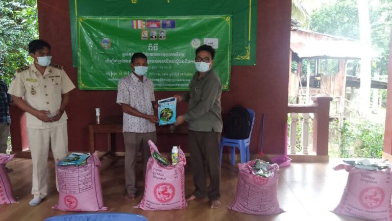 មន្ទីរកសិកម្ម រុក្ខាប្រមាញ់ និងនេសាទខេត្តកោះកុង៖ ពិធីចែកជូនសម្ភារ និងផ្តល់ទុនធាតុចូលកសិកម្ម ដើម្បីគាំទ្រផែនការអាជីវកម្មរបស់សមាជិកបណ្តុំអាជីវកម្មបន្លែ នៃអនុកម្មវិធីផ្សព្វផ្សាយបច្ចេកទេសកសិកម្មថ្មីដែលធន់ទៅនឹងការប្រែប្រួលអាកាសធាតុ (ASPIRE) ស្ថិតក្នុងឃុំជីខលើ ស្រុកស្រែអំបិល ខេត្តកោះកុង