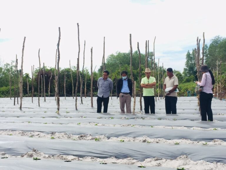 មន្ទីរកសិកម្ម រុក្ខាប្រមាញ់ និងនេសាទខេត្តកោះកុង៖ ចុះពិនិត្យតាមដានការដាំដុះរបស់កសិករ សមាជិកបណ្តុំអាជីវកម្មដំណាំបន្លែ នៅក្នុងភូមិ១ សង្កាត់ស្មាច់មានជ័យ ក្រុងខេមរភូមិន្ទ ខេត្តកោះកុង