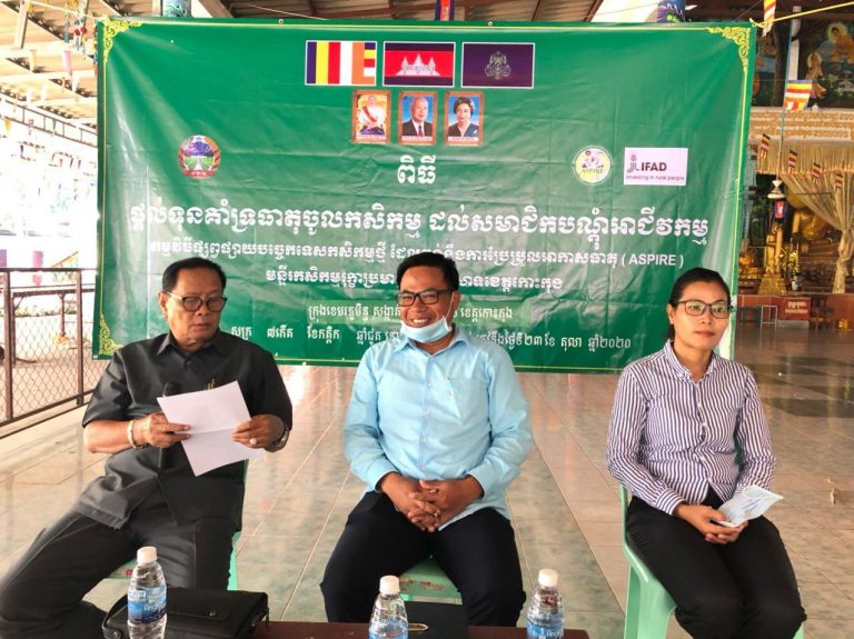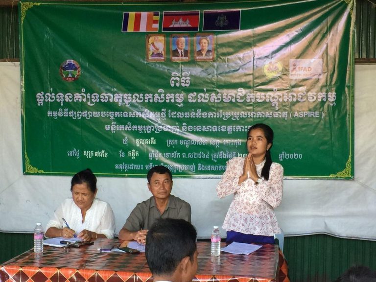 មន្ទីរកសិកម្ម រុក្ខាប្រមាញ់ និងនេសាទខេត្តកោះកុង៖ កិច្ចប្រជុំផ្តល់ទុនគាំទ្រធាតុចូលកសិកម្ម ដល់សមាជិកបណ្តុំអាជីវកម្ម នៃកម្មវិធីផ្សព្វផ្សាយបច្ចេកទេសកសិកម្មថ្មីដែលធន់ទៅនឹងការប្រែប្រួលអាកាសធាតុ(ASPIRE) ប្រចាំខេត្តកោះកុង