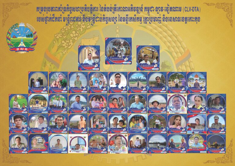 កម្រងរូបភាពថ្នាក់ដឹកនាំ មន្ត្រីរាជការ និងមន្ត្រីជាប់កិច្ចសន្យា នៃមន្ទីរកសិកម្ម រុក្ខាប្រមាញ់ និងនេសាទខេត្តកោះកុង ដែលជឿជាក់លើរាជរដ្ឋាភិបាលកម្ពុជា និងសូមគាំទ្រយ៉ាងពេញទំហឹងចំពោះកិច្ចសហប្រតិបត្តិការ នៃតំបន់ត្រីកោណអភិវឌ្ឍន៍ កម្ពុជា-ឡាវ-វៀតណាម (CLV-DTA)