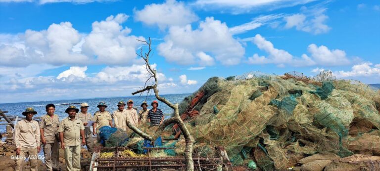 មន្ទីរកសិកម្ម រុក្ខាប្រមាញ់ និងនេសាទខេត្តកោះកុង បានរៀបចំដុតបំផ្លាញឧបករណ៍នេសាទល្មើសច្បាប់ ស្តីពីជលផល