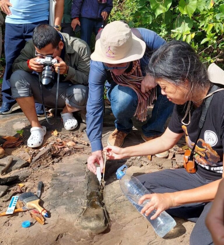 លោកស្រី សម្បូរ សុភា ប្រធានមន្ទីរវប្បធម៌ បានចុះពិនិត្យការត្រៀមធ្វេីកំណាយផូសីលឆ្អឹងដាយណូស័រ