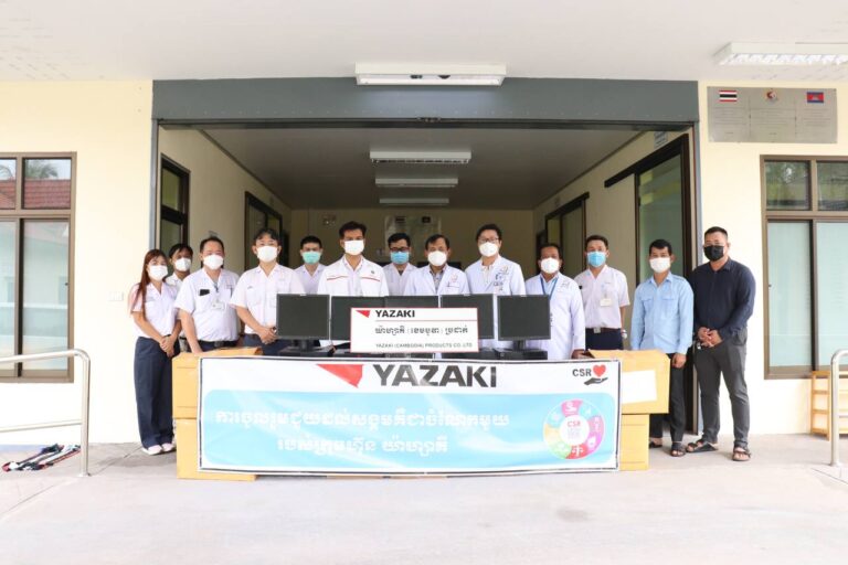ក្រុមហ៊ុន យ៉ាហ្សាគី (ខេមបូឌា) ប្រដាក់ YAZAKI (CAMBODIA) PRODUCTS CO., LTD នៃតំបន់សេដ្ឋកិច្ចពិសេសខេត្តកោះកុង ដែលបានឧបត្ថម្ភ កុំព្យូទ័រលើតុ (Computer Desktop Second hand) ចំនួន១៥ឈុត ដល់មន្ទីរពេទ្យបង្អែកខេត្តកោះកុង