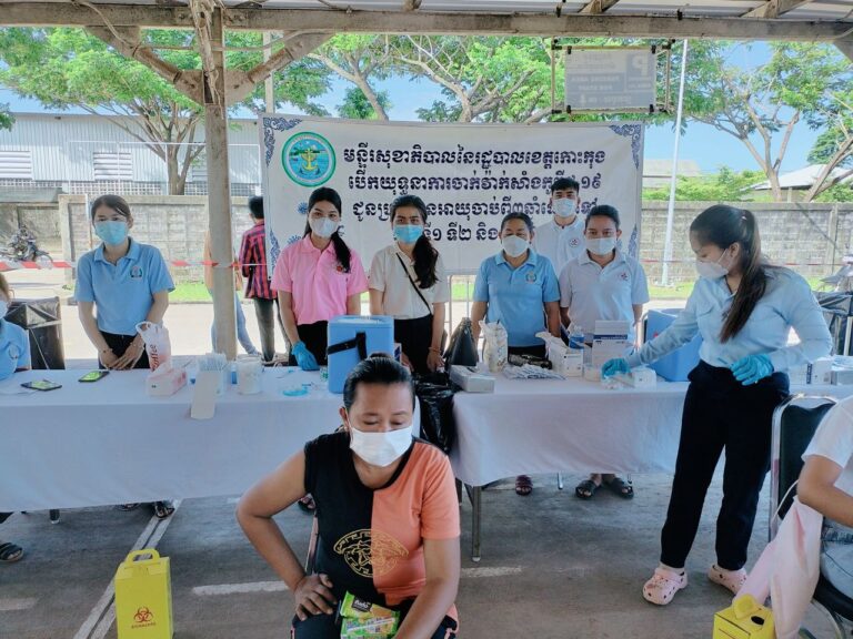 មន្ត្រីសុខាភិបាល ក្រុមការងារចាក់វ៉ាក់សាំងកូវីដ-១៩ មន្ទីរសុខាភិបាលនៃរដ្ឋបាលខេត្តកោះកុង បានចុះចាក់វ៉ាក់សាំងកូវីដ-១៩ ដូសមូលដ្ឋាននិងដូសជំរុញ ជូនបងប្អូនកម្មករនិយោជិត នៅតំបន់សេដ្ឋកិច្ចខេត្តកោះកុង
