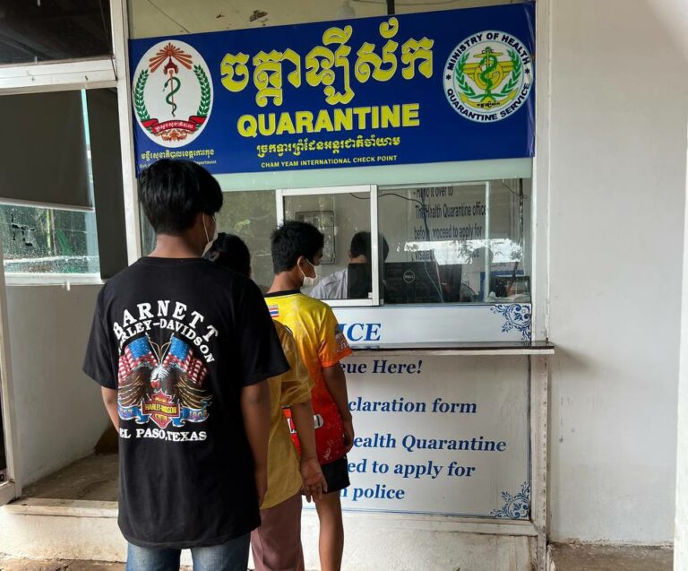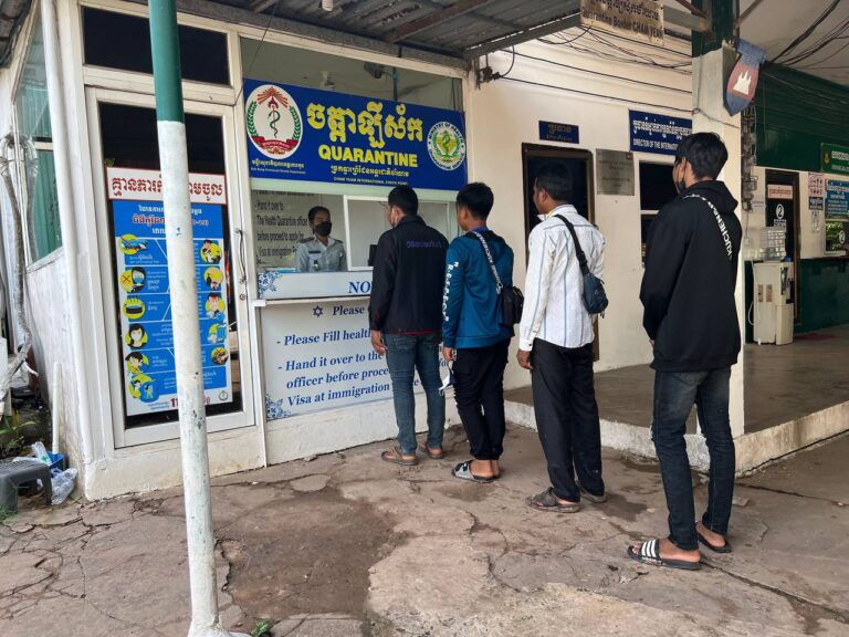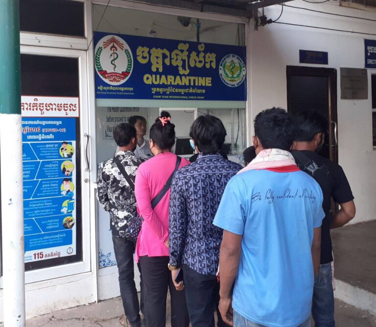 ក្រុមការងារចត្តាឡីស័ក នៃមន្ទីរសុខាភិបាលខេត្តកោះកុង បានធ្វើការត្រួតពិនិត្យកំដៅ កាតវ៉ាក់សាំងកូវីដ-១៩ ពលករ អ្នកដំណើរ អ្នកបើកបរដឹកទំនិញចេញ-ចូលតាមច្រកព្រំដែនអន្តរជាតិចាំយាម ព្រមជាមួយនឹងការបាញ់ថ្នាំសំលាប់មេរោគទៅលើរថយន្តដឹកទំនិញផងដែរ