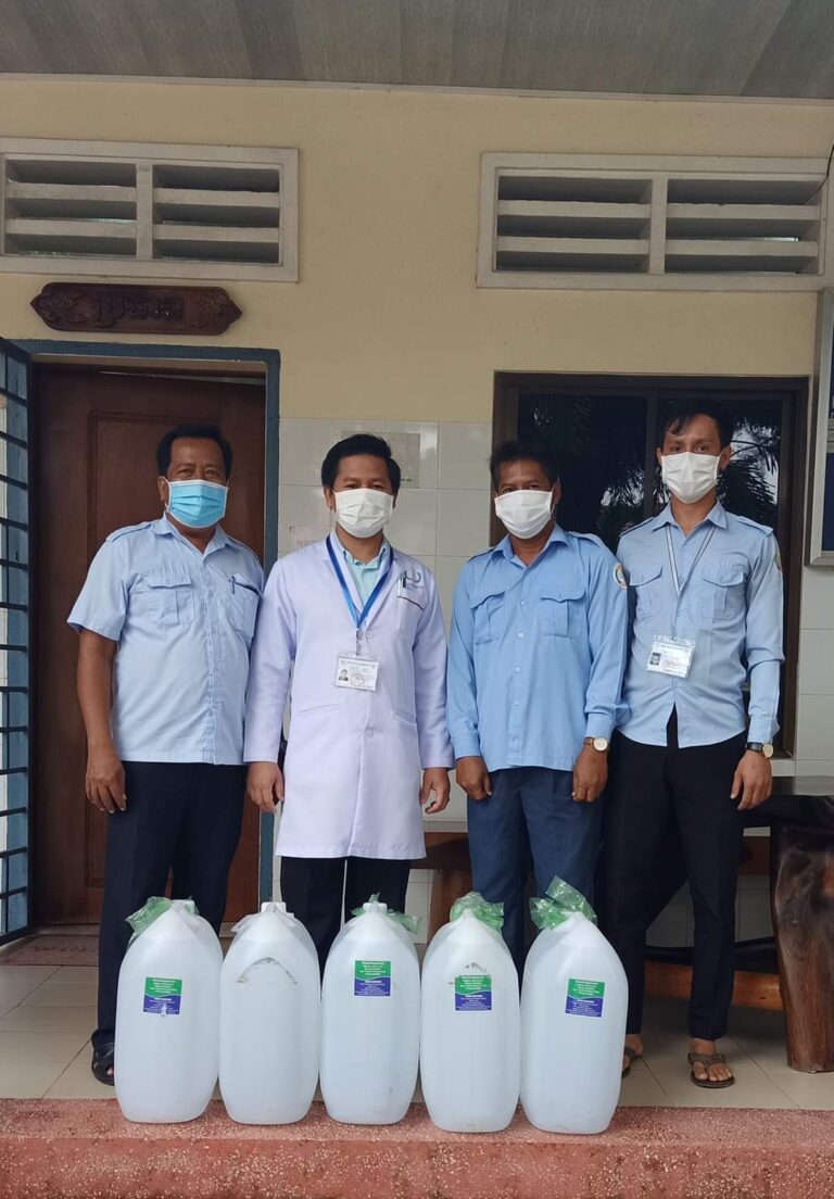 លោកជា សរ:វិទូ ប្រធានស្តីទី ការិយាល័យរដ្ឋបាលបុគ្គលិកនៃមន្ទីរសុខាភិបាលនៃរដ្ឋបាលខេត្តកោះកុង តំណាងឯកឧត្តមប្រធានមន្ទីរសុខាភិបាលនៃរដ្ឋបាលខេត្តកោះកុង បានប្រគល់ អាល់កុលចំនួន៥កាន (១៥០លីត្រ) ដល់មន្ទីរពេទ្យខេត្តកោះកុង