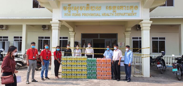 លោកវេជ្ជបណ្ឌិត ទៅ ម៉ឹង ប្រធានមន្ទីរសុខាភិបាល នៃរដ្ឋបាលខេត្តកោះកុង បានអញ្ជើញទទួលភេសជ្ជៈកូកាកូឡា ទឹកផ្លែឈើ ចំនួន ៥០ កេស ពីក្រុមហ៊ុនកូកាកូឡា ដើម្បីចូលរួមក្នុងយុទ្ធនាគារទប់ស្កាត់ការរីករាលដាលជំងឺកូវីដ-១៩