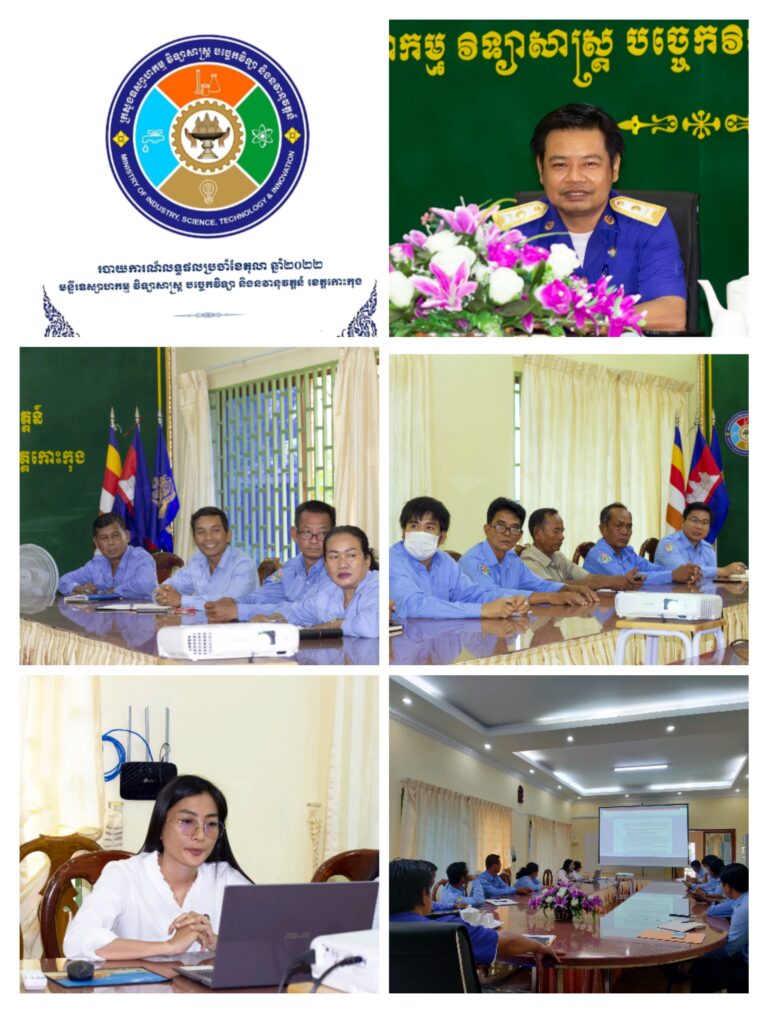 មន្ទីរឧស្សាហកម្ម វិទ្យាសាស្ត្រ បច្ចេកវិទ្យា និងនវានុវត្តន៍ខេត្តកោះកុង បានបើកកិច្ចប្រជុំបូកសរុបរបាយការណ៍លទ្ធផលការងារប្រចាំខែតុលា ឆ្នាំ២០២២ និងទិសដៅការងារបន្តសម្រាប់ខែវិច្ឆិកា ឆ្នាំ២០២២