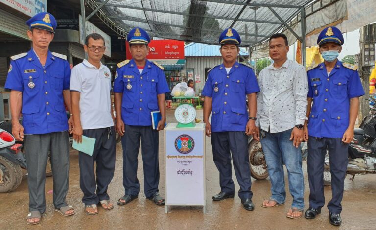 មន្រ្តីជំនាញការិយាល័យស្តង់ដារ និងមាត្រាសាស្ត្រនៃមន្ទីរឧស្សាហកម្ម វិទ្យាសាស្ត្រ បច្ចេកវិទ្យា និងនវានុវត្តន៍ ចុះរៀបចំដាក់ជញ្ជីងគំរូចំនួន ត្រួតពិនិត្យ ផ្ទៀងផ្ទាត់ ជញ្ជីងក្នុងផ្សារអណ្តូងទឹក ស្ថិតក្នុងស្រុកបូទុមសាគរ ខេត្តកោះកុង។