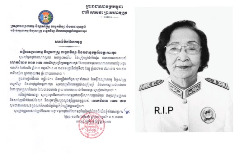 សាររំលែកទុក្ខរបស់មន្ទីរឧស្សាហកម្ម វិទ្យាសាស្ត បច្ចេកវិទ្យា និងនវានុវត្តន៍ខេត្តកោះកុង ជូនចំពោះក្រុមគ្រួសារនៃសពលោកជំទាវ អោម អេម សមាជិកក្រុមប្រឹក្សាខេត្តកោះកុង ។
