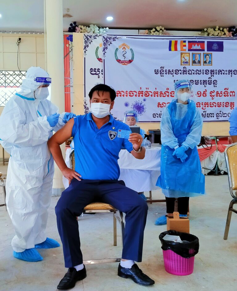 ថ្នាក់ដឹកនាំ និងមន្ត្រីរាជការនៃមន្ទីរឧស្សាហកម្ម វិទ្យាសាស្រ្ត បច្ចេកវិទ្យានិងនវានុវត្តន៍ខេត្តកោះកុង បានចាក់វ៉ាក់សាំងបង្ការជំងឺកូវីដ-១៩ លេីកទី៣ ( ដូសជំរុញ AstraZeneca )