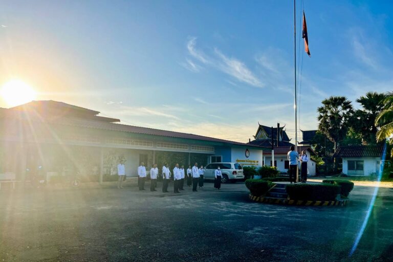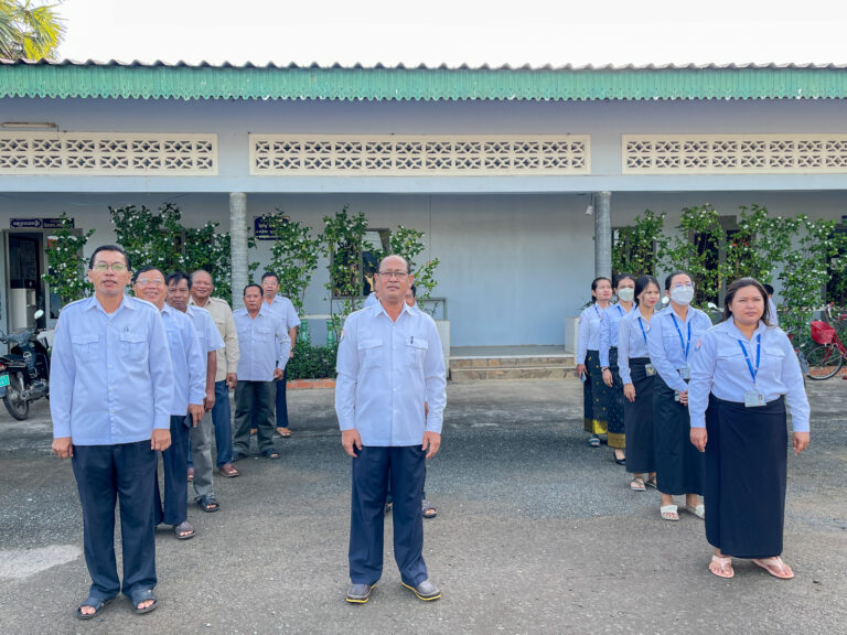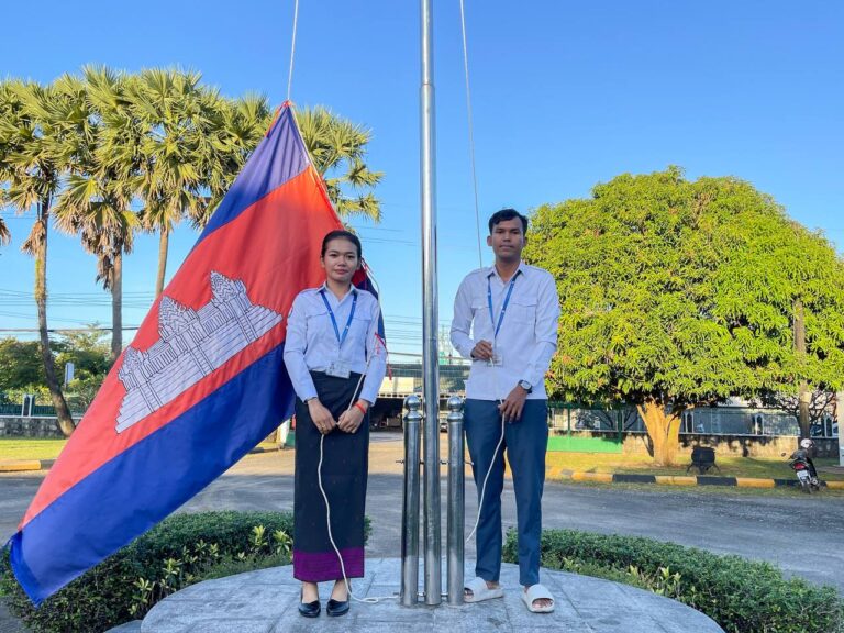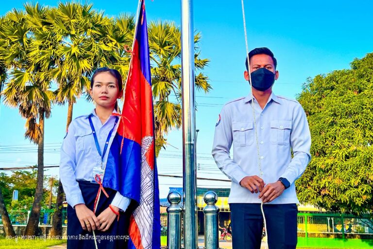 ព្រឹកថ្ងៃចន្ទ មន្ត្រីរាជការមន្ទីរសាធារណការ និងដឹកជញ្ជូនខេត្តកោះកុង គោរពទង់ជាតិ ព្រះរាជាណាចក្រកម្ពុជា