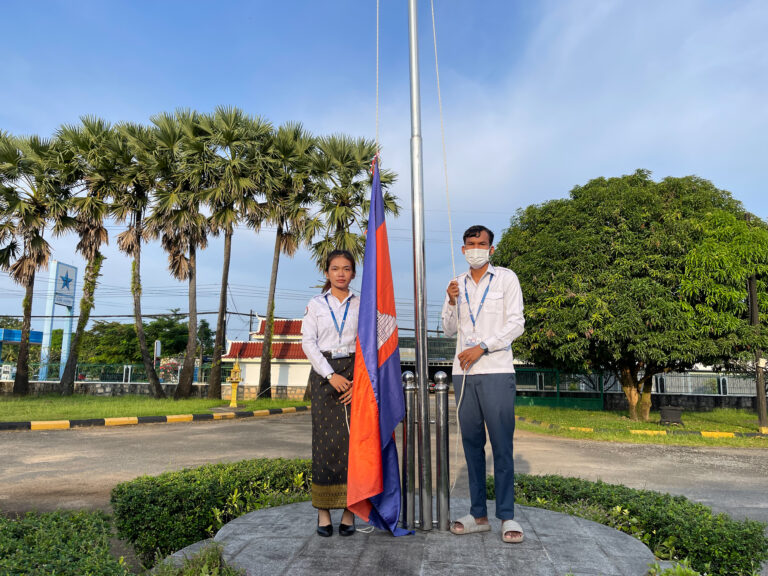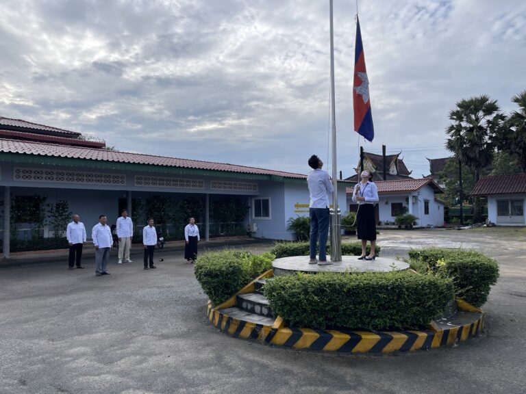 មន្ត្រីរាជការមន្ទីរសាធារណការ និងដឹកជញ្ជូនខេត្តកោះកុង គោរពទង់ជាតិ នៃព្រះរាជាណាចក្រកម្ពុជា
