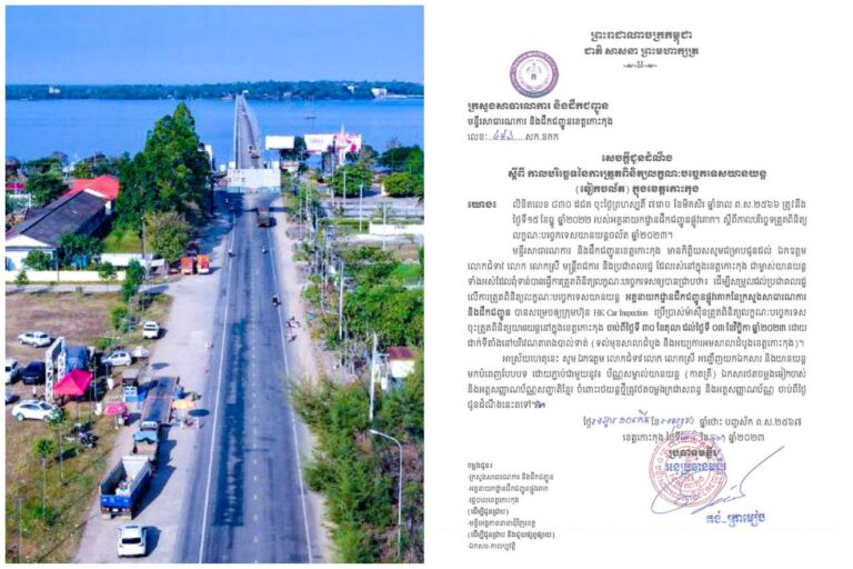 មន្ទីរសាធារណការ និងដឹកជញ្ជូនខេត្តកោះកុង សូមជូនដំណឹងស្តីពី ឆៀកចល័តនឹងមកដល់ខេត្តកោះកុងនៅថ្ងៃទី៣០ ខែតុលា ដល់ថ្ងៃទី៣ ខែវិច្ឆិកា ឆ្នាំ២០២៣ នាពេលខាងមុខនេះ