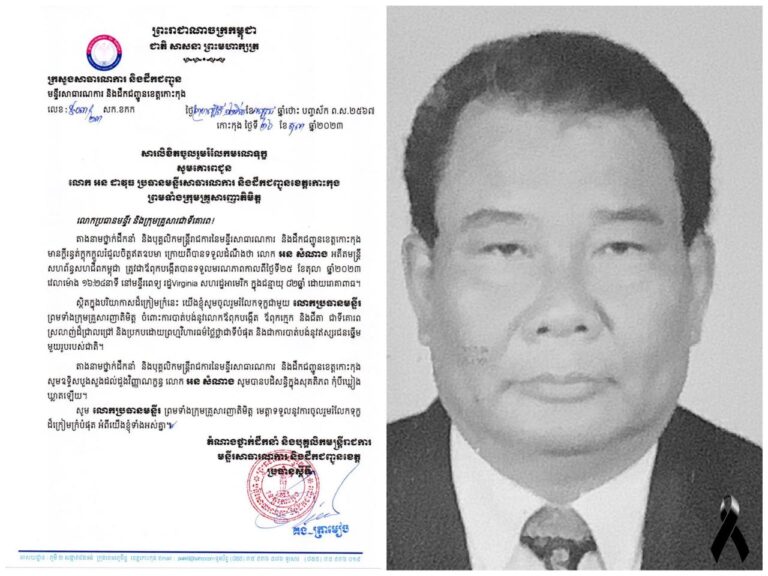 សារលិខិតចូលរួមរំលែកមរណទុក្ខ សូមគោរពជូន លោក អន ដាវុធ ប្រធានមន្ទីរសាធារណការ និងដឹកជញ្ជូនខេត្តកោះកុង ព្រមទាំងក្រុមគ្រួសារញាតិមិត្ត