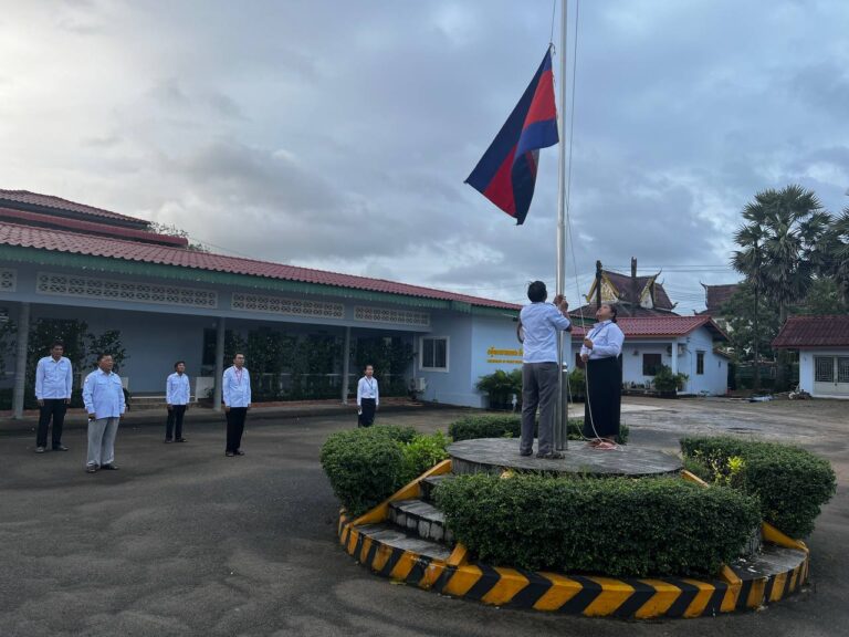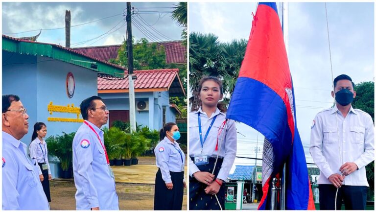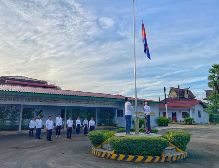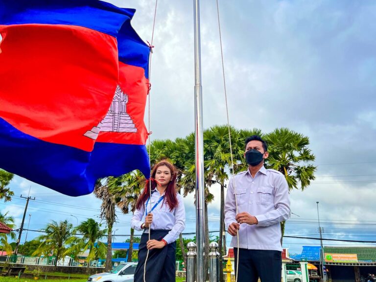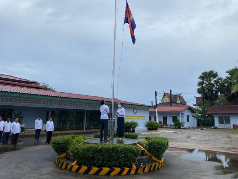 ព្រឹកថ្ងៃចន្ទ មន្ត្រីរាជការមន្ទីរសាធារណការ និងដឹកជញ្ជូនខេត្តកោះកុង គោរពទង់ជាតិ ព្រះរាជាណាចក្រកម្ពុជា