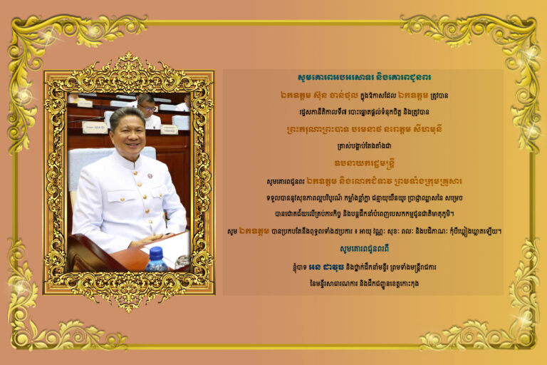 យើងខ្ញុំជាថ្នាក់ដឹកនាំ និងមន្រ្តីរាជការទាំងអស់ នៃមន្ទីរសាធារណការ និងដឹកជញ្ជូនខេត្តកោះកុង សូមគោរពអបអរសាទរ ឯកឧត្តម ស៊ុន ចាន់ថុល ត្រូវបាន ព្រះករុណា ព្រះបាទបរមនាថ នរោត្តម សីហមុនី ត្រាស់បង្គាប់តែងតាំងជា ឧបនាយករដ្ឋមន្ត្រី