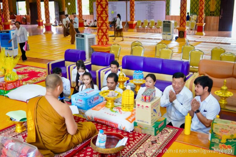 លោក អន ដាវុធ ប្រធានមន្ទីរសាធារណការ និងដឹកជញ្ជូនខេត្តកោះកុង និងលោកស្រី ព្រមទាំងមន្រ្ដីរាជការ មន្ត្រីជាប់កិច្ចសន្យាក្រោមឱវាទមន្ទីរ អញ្ជើញក្នុងពិធីកាន់បិណ្ឌ៥ វត្តទេពនិមិត្ត (វត្តថ្មី)