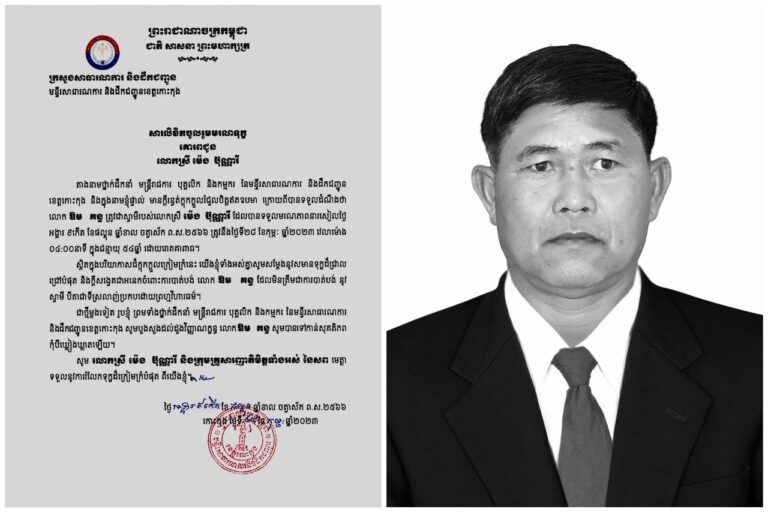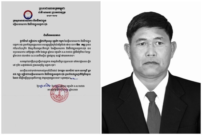 ដំណឹងមរណភាព ៖ លោក ឱម គន្ធ ប្រធានការិយាល័យ លូទឹក និងស្ថានីយ៍ចម្រោះទឹកកខ្វក់ នៃមន្ទីរសាធារណការ និងដឹកជញ្ជូនខេត្តកោះកុង បានទទួលមរណភាព