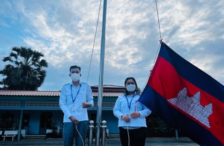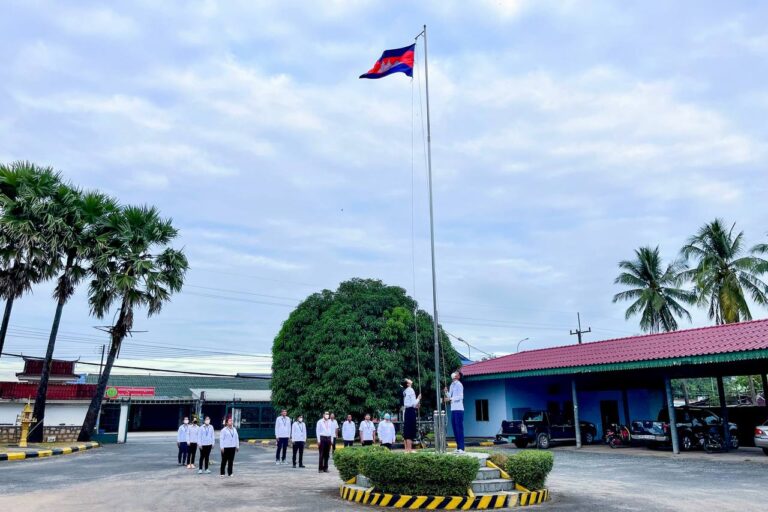 មន្ត្រីរាជការមន្ទីរសាធារណការ និងដឹកជញ្ជូនខេត្តកោះកុង គោរពទង់ជាតិ និងភ្លេងជាតិ នៃព្រះរាជាណាចក្រកម្ពុជា